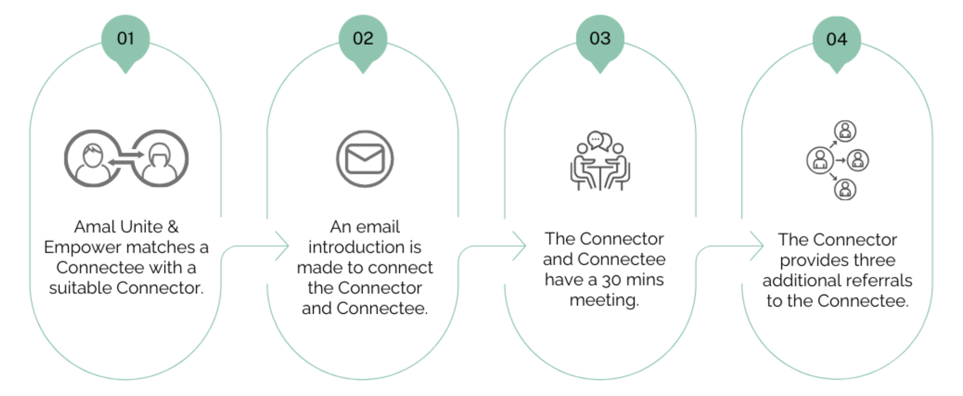 The Connector concept is simple and powerful. It engages community and business leaders (Connectors) to help newcomers (Connectees) build professional networks.